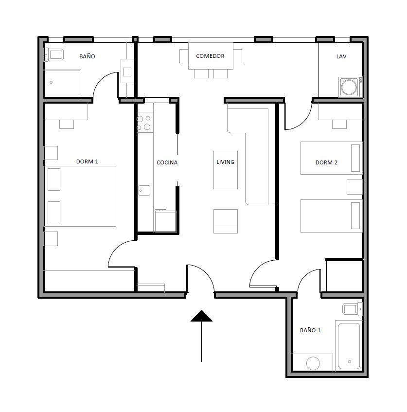 La propietat té 82 m² perfectament distribuïts en un ampli i lluminós saló amb galeria, cuina, dos dormitoris dobles grans amb bany privat, dos banys complets (un amb banyera i l'altre amb dutxa) i una bugaderia independent. La cuina es pot integrar al saló o mantenir-la separada gràcies a la seva pràctica porta corredissa, la qual cosa afegeix versatilitat i funcionalitat a l'espai.